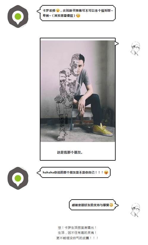其实这也跟卡罗乐天派的心态和沙雕气质逃不了干系。他自称想给自己塑造一个温柔的人设,但是难以掩盖灵魂里沙雕逗比的个性,经常在生活小细节里也能找到乐子。喜欢卡罗漫画的人都知道,他的很多漫画都透露着浓厚的“中二”气息,比如下面这组,看完你就完全可以get到他中二的精髓了。