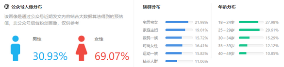 受众和目标用户主要为女性,占比近70%,其中以18-29岁拥有高消费能力的女性粉丝为主。