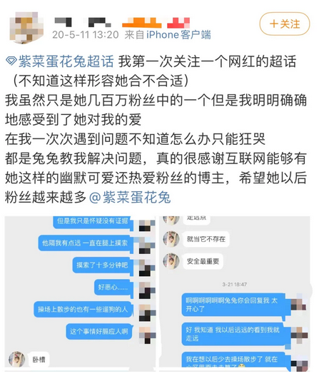 (粉丝在紫菜蛋花兔超话里的分享)