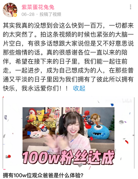 兔子的B站粉丝破百万