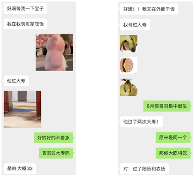花花很可爱,也确实很老实。她喜欢叫别人宝子,痴迷于发doge吃汉堡表情包,还总在朋友圈分享她侄儿给她拍的美丽照片。