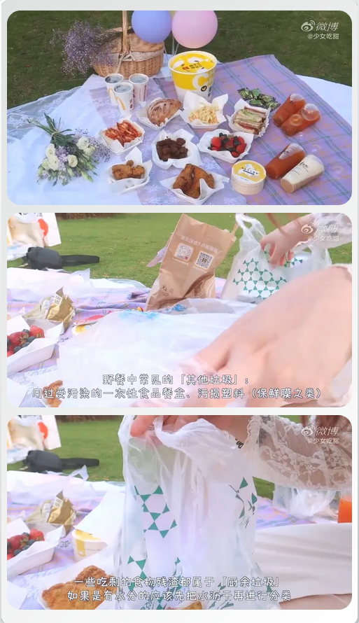 五一假期,@少女吃甜和朋友一起去快乐野餐。在Vlog里,你不仅可以学习三明治的做法,还能够学习到野餐后剩下垃圾该如何分类。