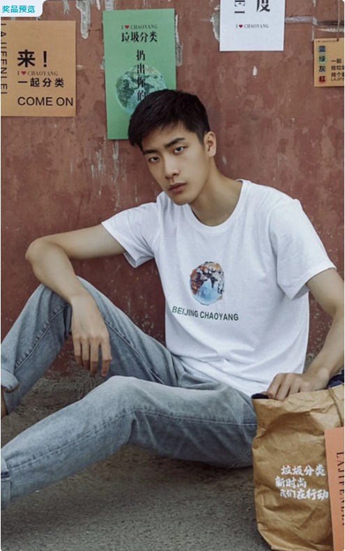 别误会,奖品并不是这位帅气小哥哥,而是小哥哥身上的T恤与手中的环保袋。