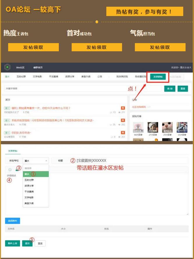 参与教程:登录-蜂群0A,点击-论坛,在论坛点击-发表新帖,在灌水区,带话题#宝藏置换,发布图文即可。